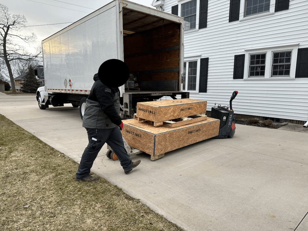 I received another phone call from the shipping company on the day of delivery. They indicated that the kit crate was too large to fit on the lift gate and were wondering how we could solve the problem. We agreed that our only viable option was to unpack the crate on the truck and offload the contents by hand.